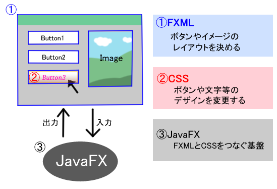 ・FXML・・・・Java用のExtensibleMarkupLanguage(XML)