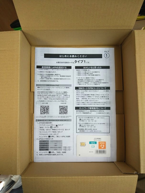 最初はSIMカード購入代金として3,000円ほどかかるものですが、キャンペーンで1円で購入できました。(しかし送料が700円くらいかかりました)