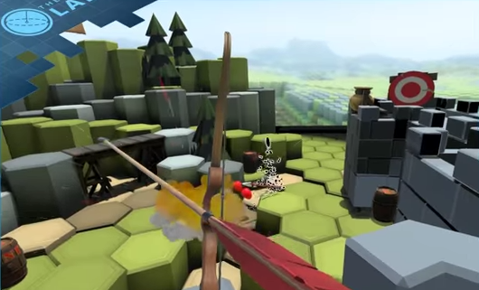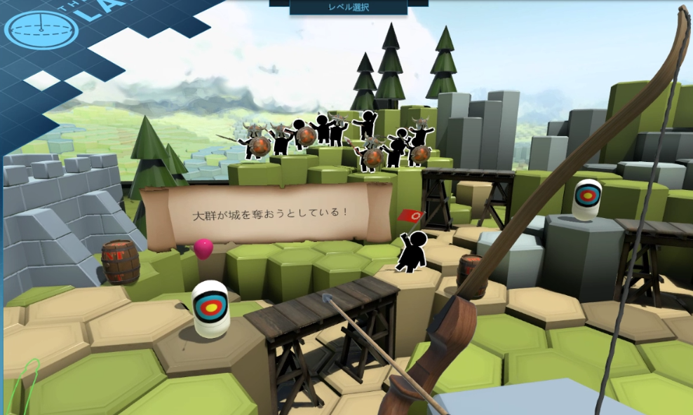 最初に体験したのがコントローラーを弓と矢に見立てて敵を射つアーチェリーゲームでした。