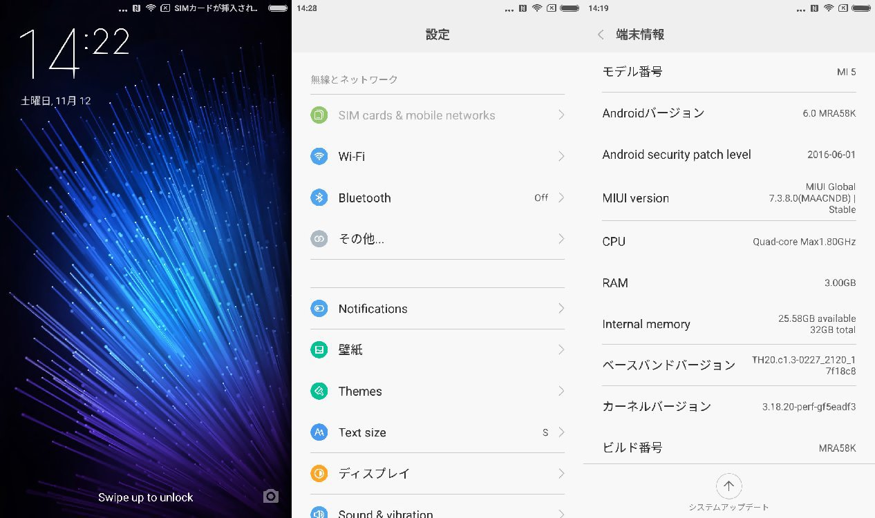 GearBestのXiaomi mi5はショップROMが入っているため、初めから日本語を選択できますが、翻訳できていない部分もあり、メニュー周りは特に不便です。