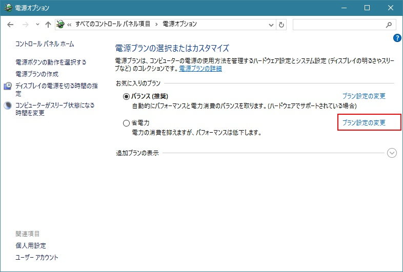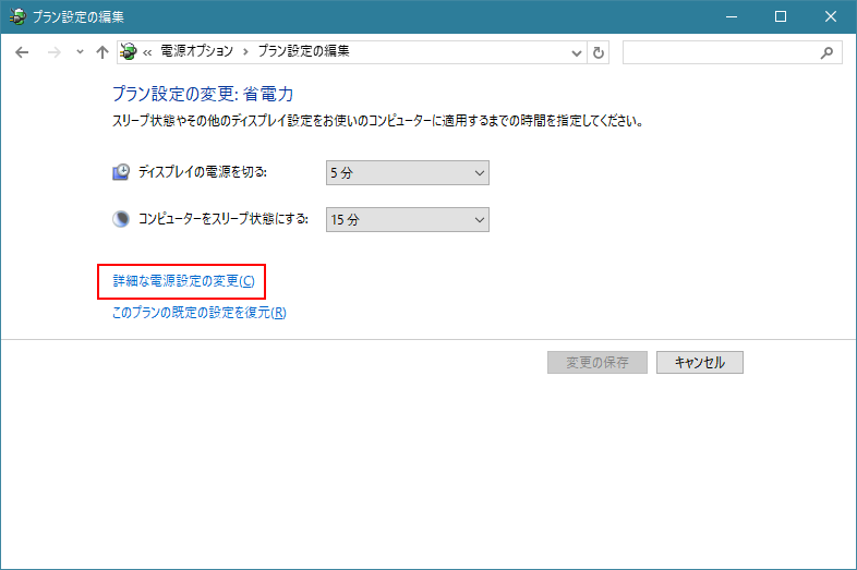 4. 詳細な電源設定の変更をクリック