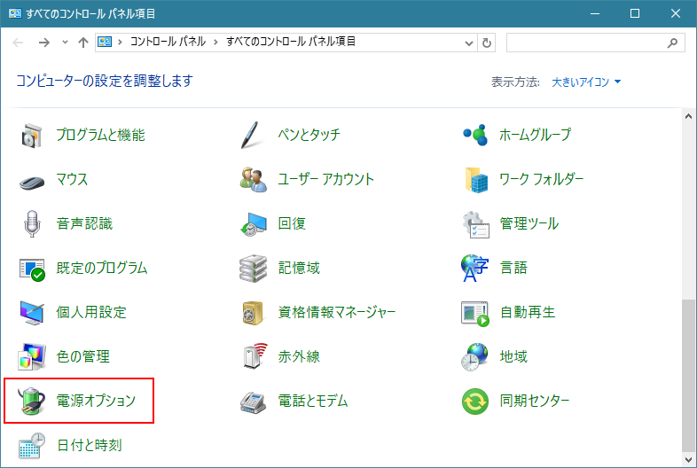 2. 電源オプションを選択