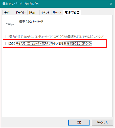 3. "電源の管理"タブの「このデバイスで、コンピューターのスタンバイ状態を解除できるようにする」のチェックを外す