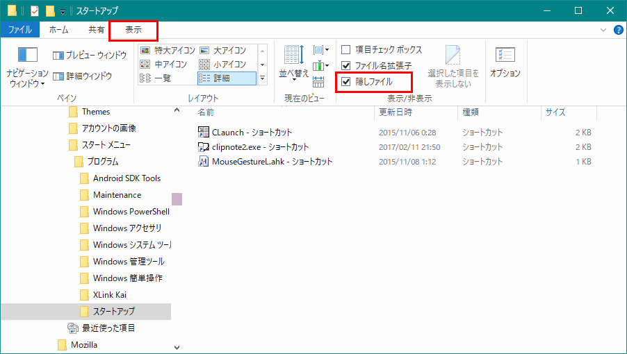 スタートアップフォルダ