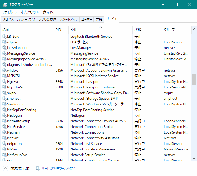 スタートアップ(サービス)スタートアップサービスについてもタスクマネージャーから設定できる。